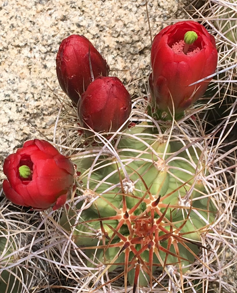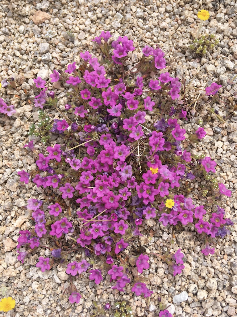 After a second night’s stay, I left Palm Springs for an easy 4-hour jaunt to Phoenix – so I thought. Maybe it was the long day in Joshua; maybe the Cheesecake Factory pasta. Whatever – I hadn’t felt so unwell in years, like “I can’t keep driving” unwell. Getting a midday motel room in Blythe unwell. Asking the desk clerk to check on me, calling my sister, and laying inert on the bed for 20 hours unwell. So let’s just gaze at pretty desert flowers.