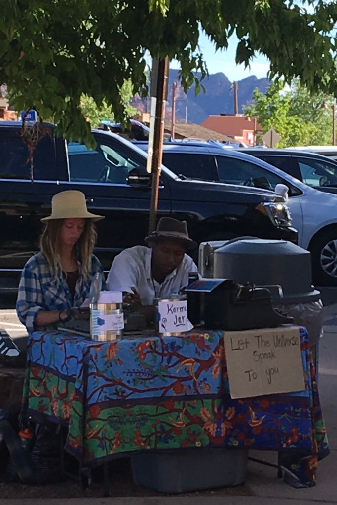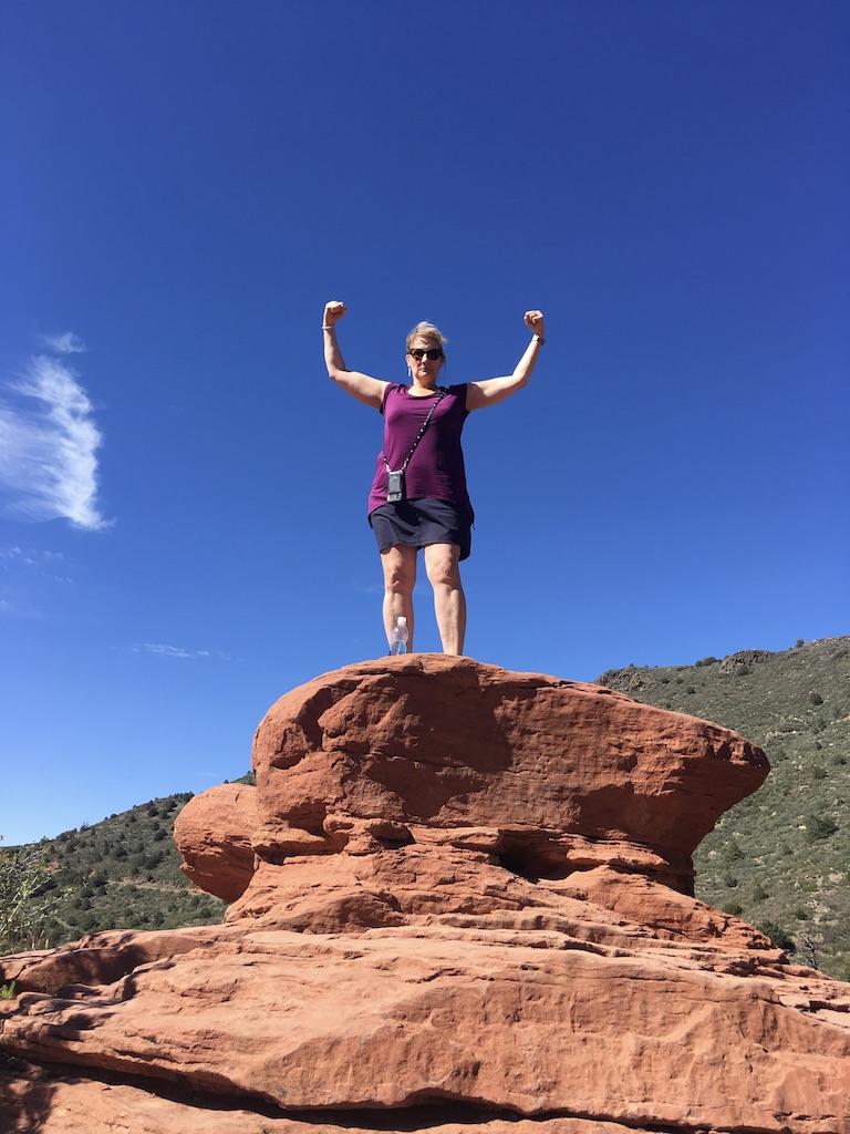 I was grateful for one more week in Sedona, this time in an AirBnB. I dipped back to Phoenix to pick up sister Jacquie who graciously agreed to see what all the hype is about (my family do not share my enthusiasm for the desert). We did the things sisters do – eat (at Secret Garden), shop (at Tlaquepaque), and sign up for another Jeep tour up Schnebly Hill (no timeshare cruelty this time, I paid cash). She seemed to get in the spirit eventually – but how could you not, what with the universe speaking and all.