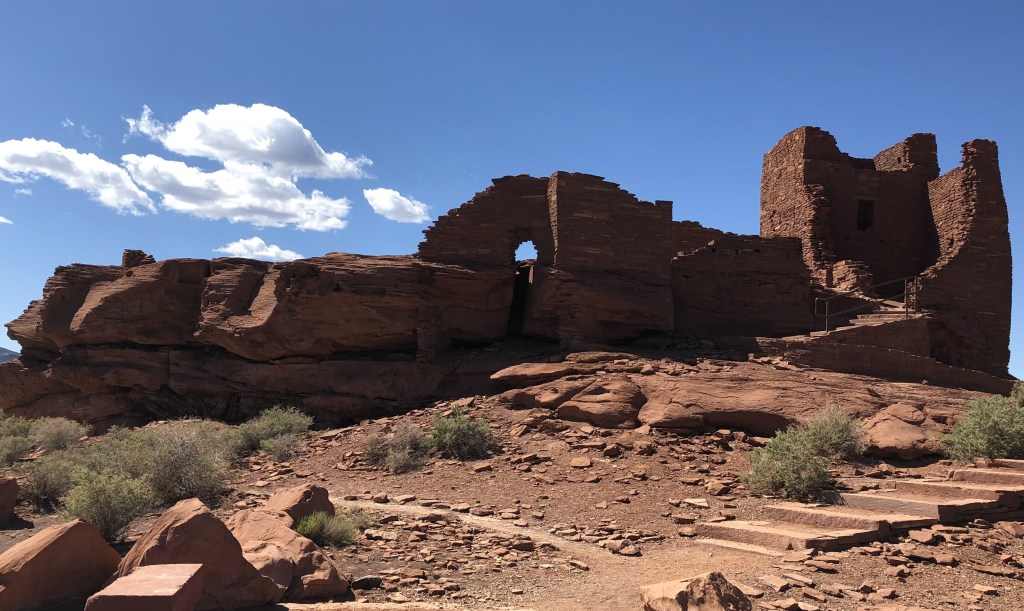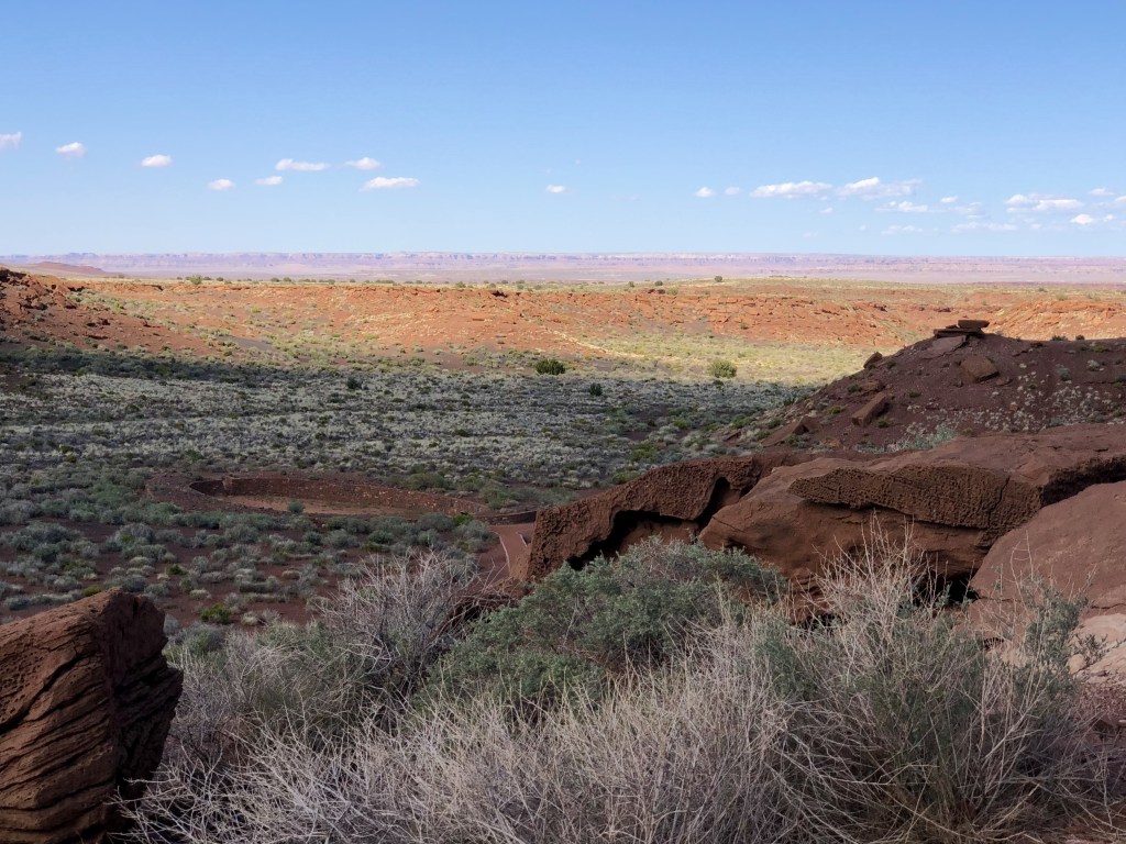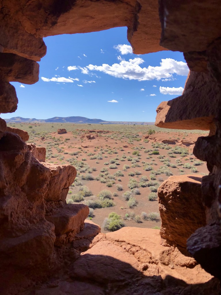 Of all the pueblo ruins in this region – Honanki, Palatki, Montezuma, Walnut Canyon, Tuzigoot – none cast a spell over me like Wupatki. Stories echo in the ever-present winds that erode this complex of castles and crumbling huts perched atop the Colorado Plateau. I don’t fully understand what forces move me in this high and lonely place – the sharp contrasts, the clean bite of the breeze, the evidence of a home well-used?